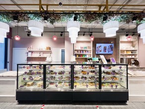 На витрине представлен богатый ассортимент потрясающих сладких угощений: воздушное пирожное, нежные чизкейки, бисквиты с кремом и шоколадной глазурью, тартинки с сухофруктами и орехами, авторское эскимо, по-домашнему вкусные торт "Муравейник", "Наполеон" и "Птичье молоко", яркие макаруны, эклеры с разнообразной начинкой, блинный торт с ягодами и многое другое.